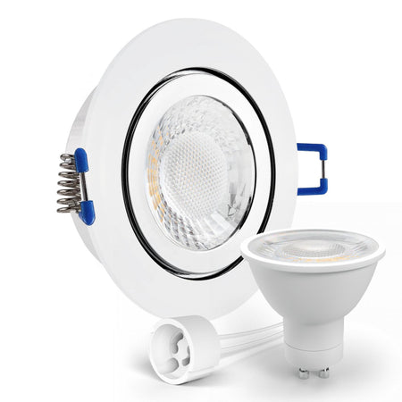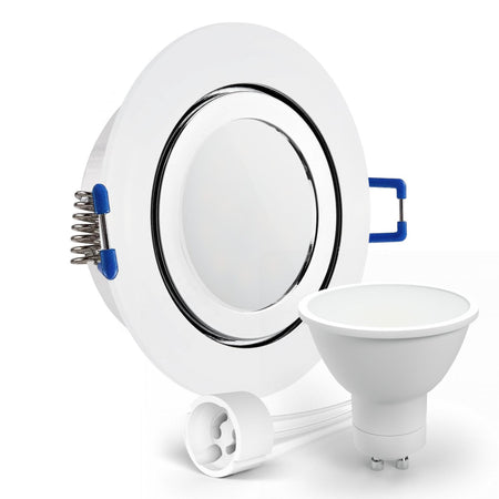Als Set erhalten Sie den Einbaurahmen, eine GU10-230V-Fassung sowie ein Leuchtmittel (wenn ausgewählt).
