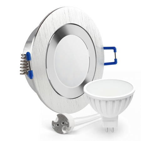 LED Einbaustrahler Spot Feuchtraum IP44 Alu geschliffen rund Glas Lochmaß Ø 60mm - 75mm GU5.3 MR16 12V