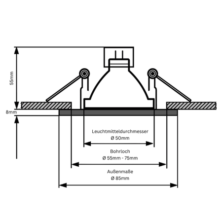 | Einbaudurchmesser | Ø 55mm - 75mm |