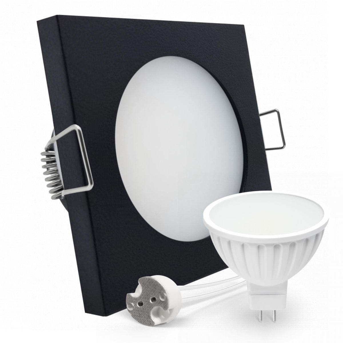 LED Einbaustrahler Spot Feuchtraum IP44 schwarz eckig Lochmaß Ø 60mm - 75mm GU5.3 MR16 12V