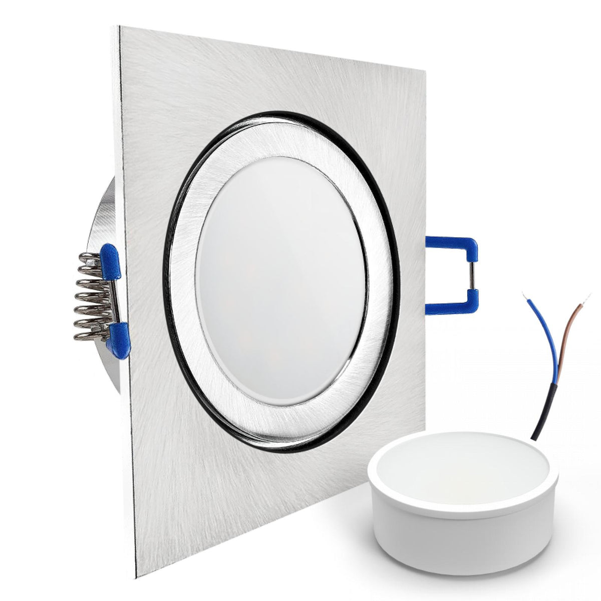 LED Einbaustrahler Spot Feuchtraum IP44 Edelstahl gebürstet eckig Glas Lochmaß Ø 60mm - 85mm geringe Einbautiefe flach 230V