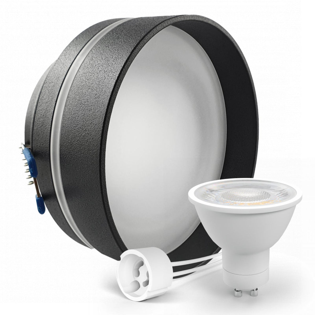 Als Set erhalten Sie den Einbaurahmen, eine GU10-230V-Fassung sowie ein Leuchtmittel (wenn ausgewählt).