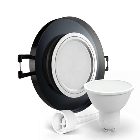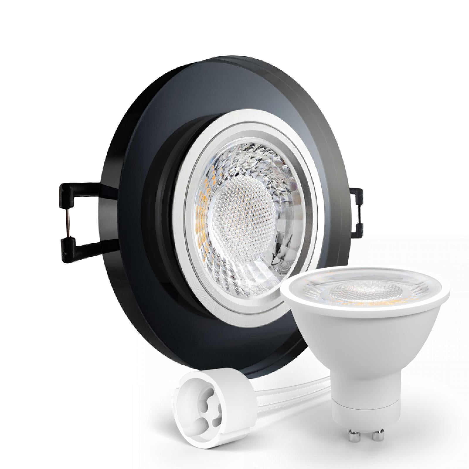 LED Einbaustrahler Spot schwarz spiegelnd rund Glas Lochmaß Ø 68mm - 75mm GU10 230V