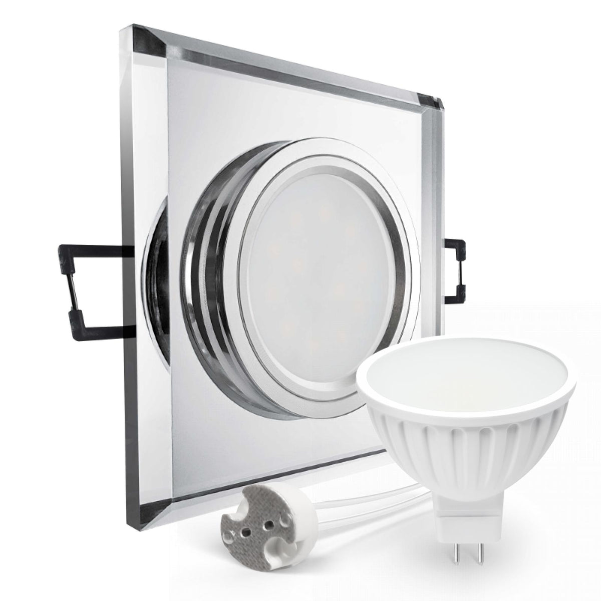 LED Einbaustrahler Spot spiegelnd eckig Glas Lochmaß Ø 68mm - 80mm GU5.3 MR16 12V