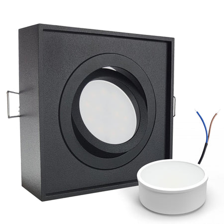 LED Aufbau Einbaustrahler schwarz eckig 30° schwenkbar Lochmaß Ø 85mm - 90mm geringe Einbautiefe flach 230V