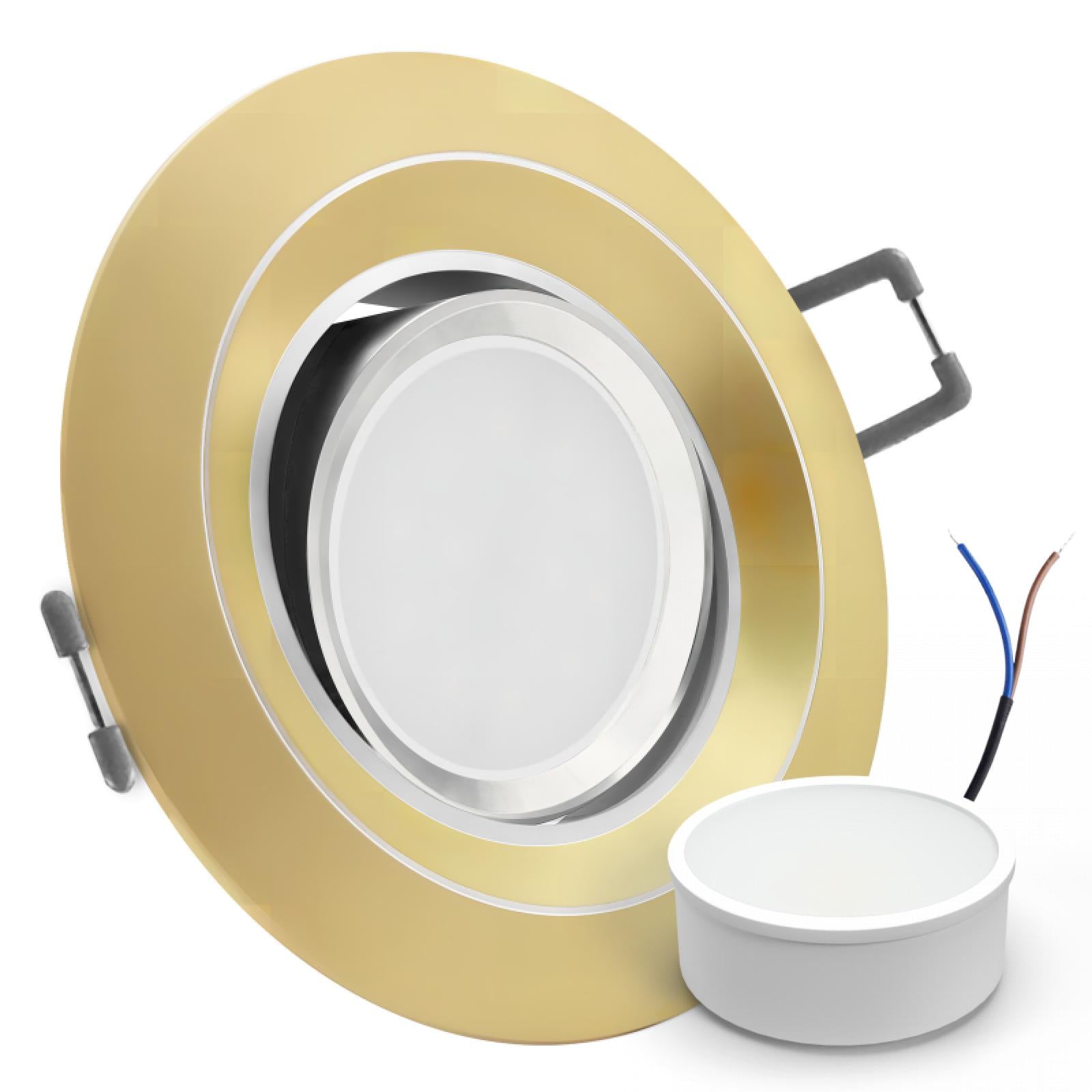 LED Einbaustrahler Spot Gold matt rund 360° schwenkbar Lochmaß Ø 68mm - 95mm geringe Einbautiefe flach 230V