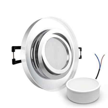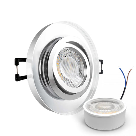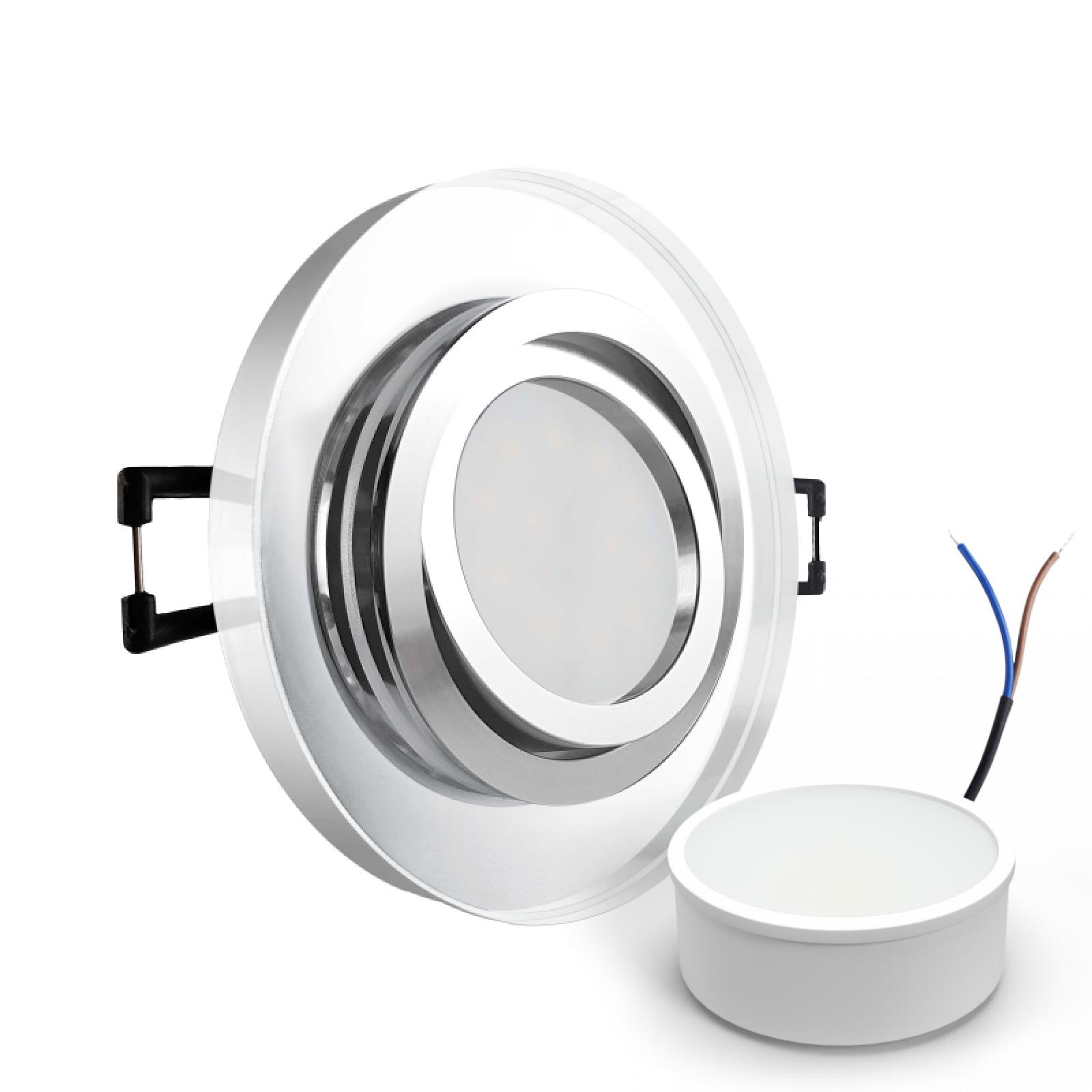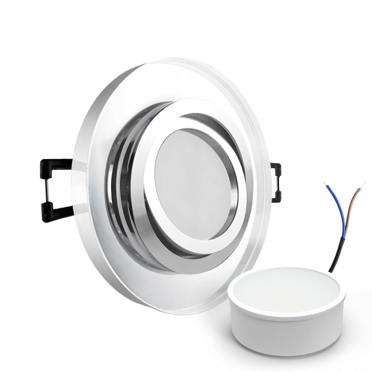 LED Einbaustrahler Spot spiegelnd rund Glas 360° schwenkbar Lochmaß Ø 68mm - 75mm geringe Einbautiefe flach 230V