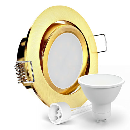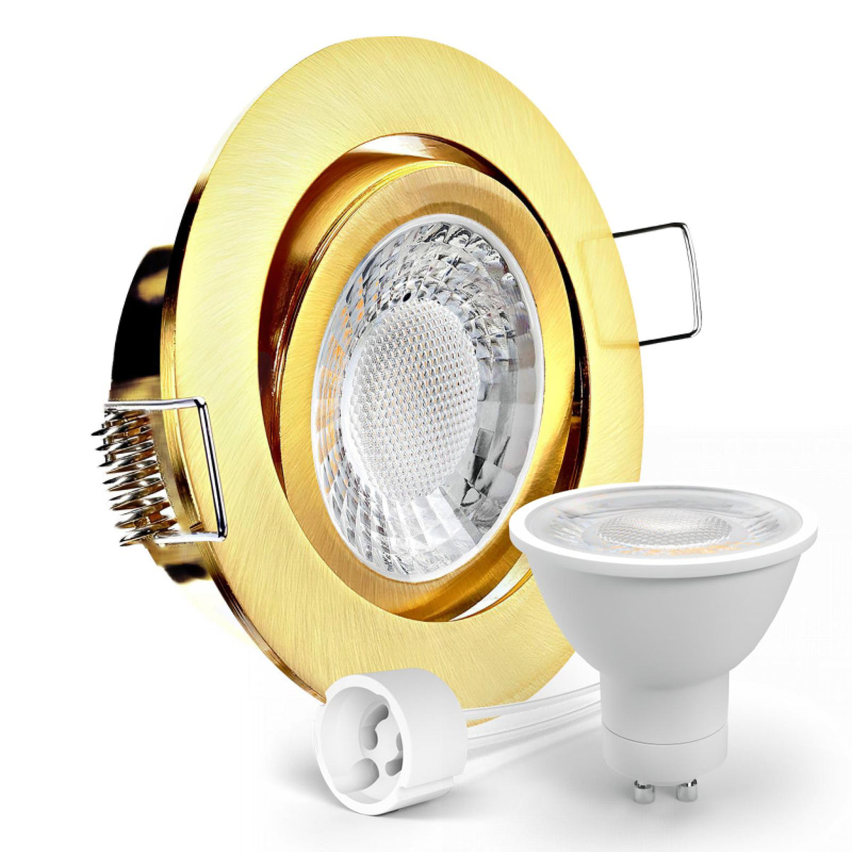 LED Einbaustrahler Spot Gold-Messing gebürstet rund 360° schwenkbar Lochmaß Ø 68mm - 75mm GU10 230V