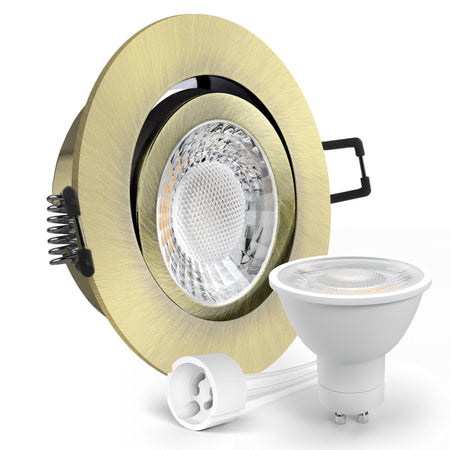 LED Einbaustrahler Spot Altmessing gebürstet rund 360° schwenkbar Lochmaß Ø 68mm - 75mm GU10 230V