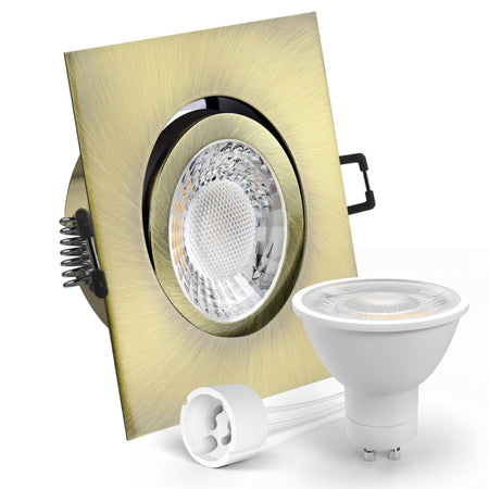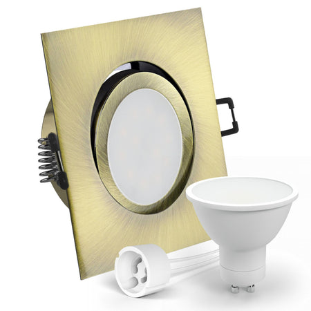 LED Einbaustrahler Spot Altmessing gebürstet eckig 30° schwenkbar Lochmaß Ø 68mm - 80mm GU10 230V