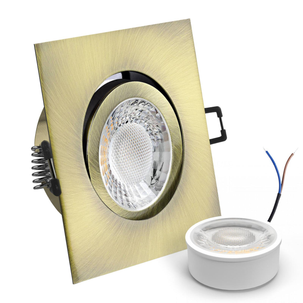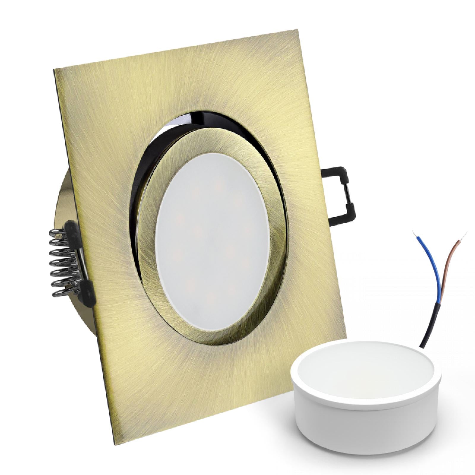 LED Einbaustrahler Spot Altmessing gebürstet eckig 30° schwenkbar Lochmaß Ø 68mm - 80mm geringe Einbautiefe flach 230V