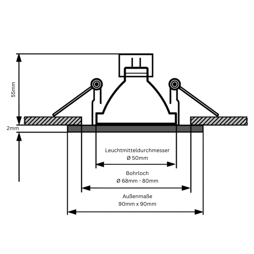 - Optimale Abmessungen: Der Einbaudurchmesser beträgt Ø 68mm - 80mm, und die benötigte Einbautiefe liegt bei 55mm.