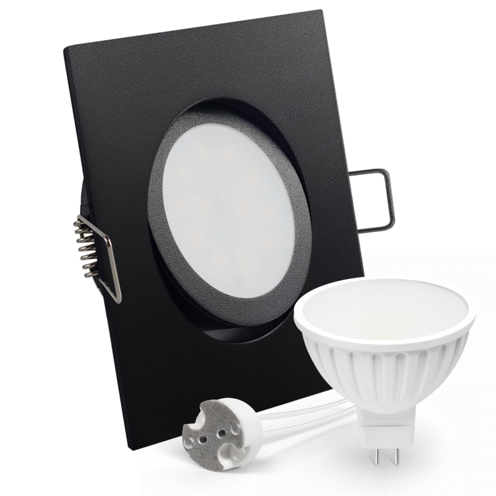 LED Einbaustrahler Spot schwarz eckig 30° schwenkbar Lochmaß Ø 68mm - 80mm GU5.3 MR16 12V