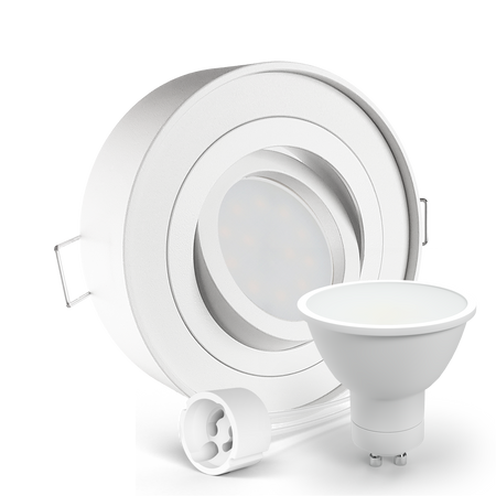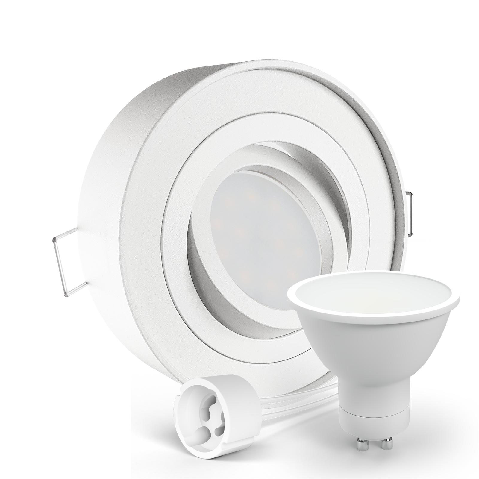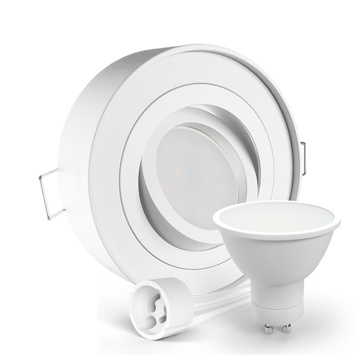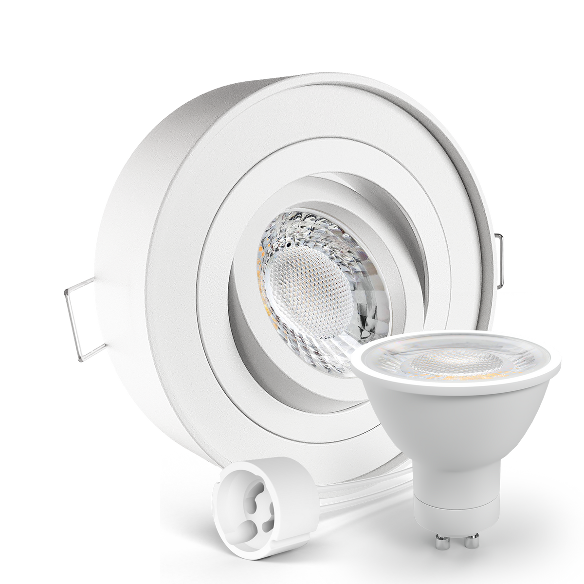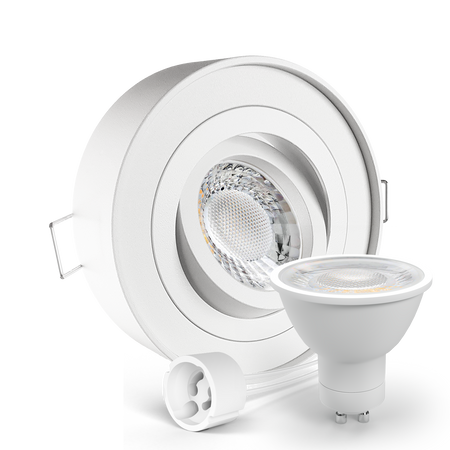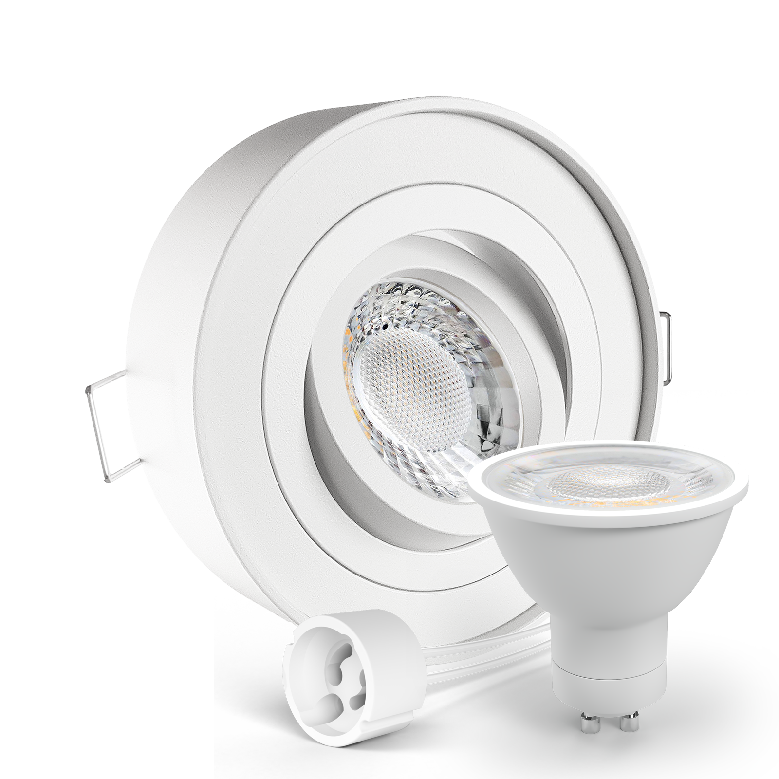 Als Set erhalten Sie den Einbaurahmen, eine GU10-230V-Fassung sowie ein Leuchtmittel (wenn ausgewählt).