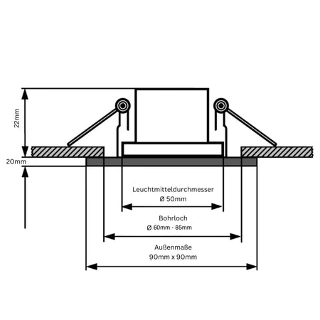 Dank der durchdachten Konstruktion ist die Installation des Einbauspots LED 230V kinderleicht. Der benötigte Einbaudurchmesser beträgt Ø 60mm - 85mm, während die Einbautiefe nur 22mm beträgt. Dies macht ihn ideal für verschiedene Deckenarten und ermöglicht eine nahtlose Integration in Ihre Räumlichkeiten.