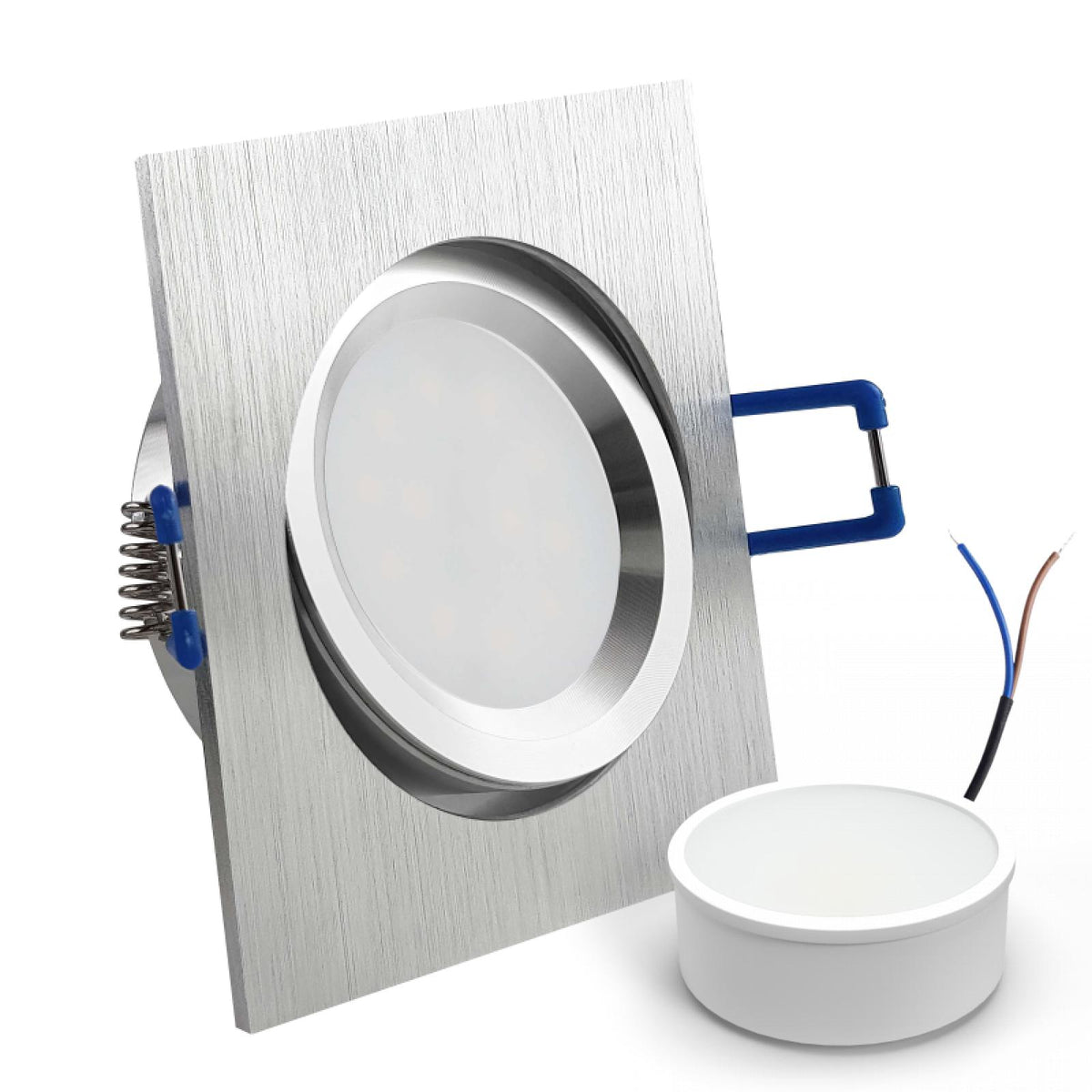 LED Einbaustrahler Spot Alu geschliffen eckig 30° schwenkbar Lochmaß Ø 68mm - 75mm geringe Einbautiefe flach 230V
