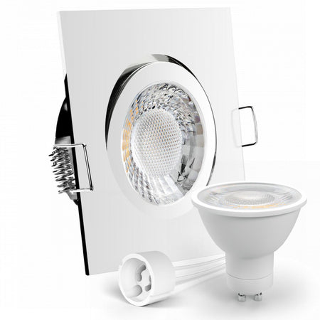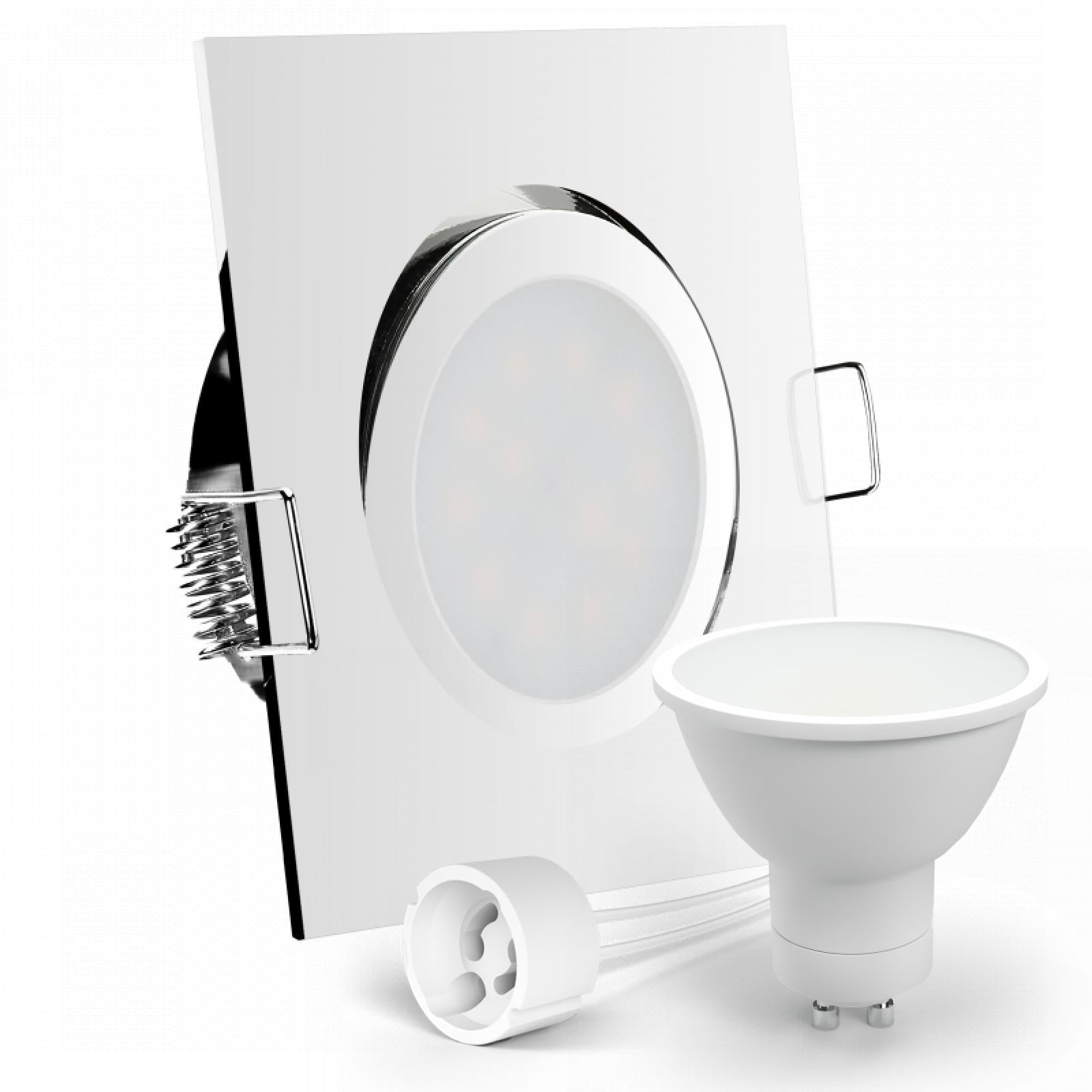 LED Einbaustrahler Spot Chrom glänzend eckig 30° schwenkbar Lochmaß Ø 68mm - 80mm GU10 230V