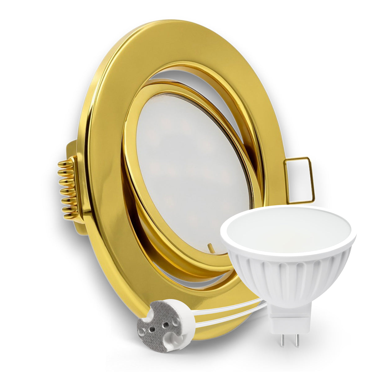 LED Einbaustrahler Spot Gold Messing Optik rund 360° schwenkbar Lochmaß Ø 68mm - 80mm GU5.3 MR16 12V