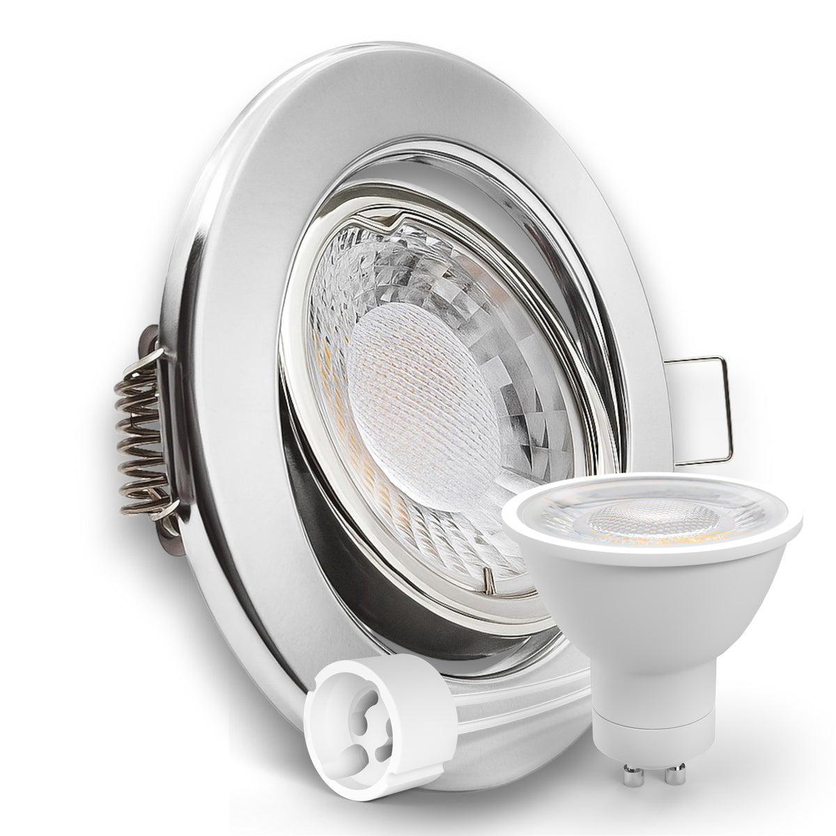 LED Einbaustrahler Spot Chrom rund 360° schwenkbar Lochmaß Ø 68mm - 80mm GU10 230V